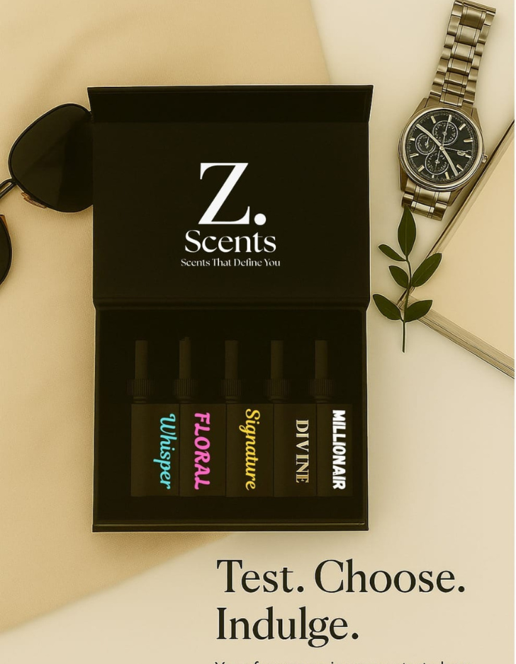 Z. Scents presents its 5 bottles Tester box with following perfumes: